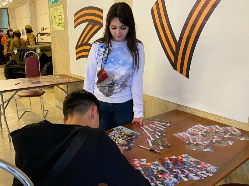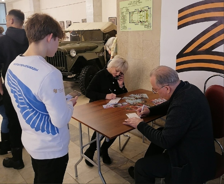 Перед началом мероприятия все пришедшие смогли посмотреть выставку «Вик Патриоты», а также написать добрые пожелания и слова поддержки нашим защитникам на площадке Волонтеров Победы.