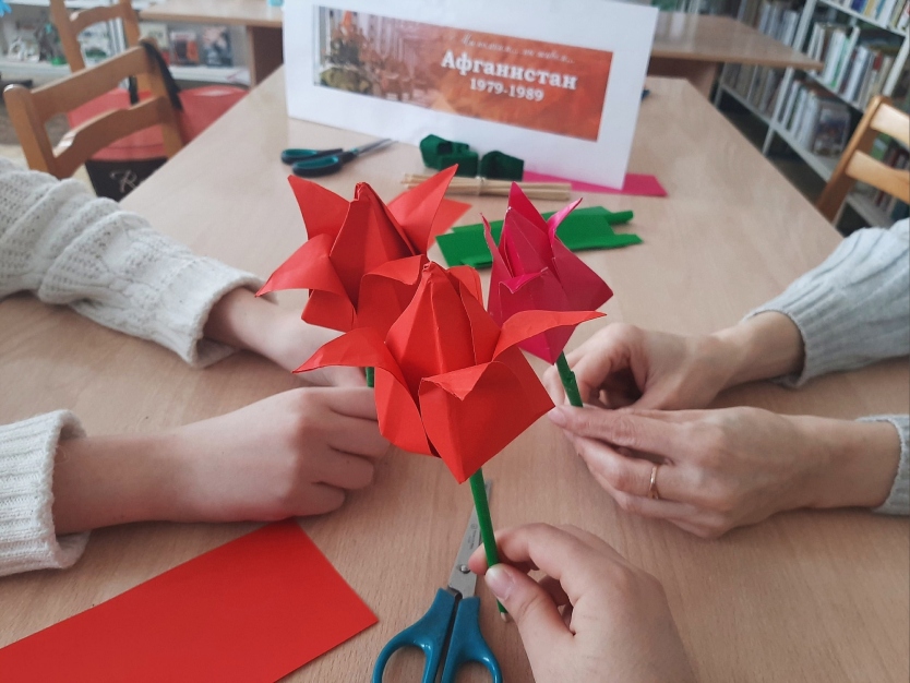 В преддверии Дня памяти о россиянах, выполнявших служебный долг за пределами Отечества Волонтеры Победы, юнармейцы, школьники, студенты, воспитанники военно-патриотических объединений изготовили основной атрибут акции – красный тюльпан.