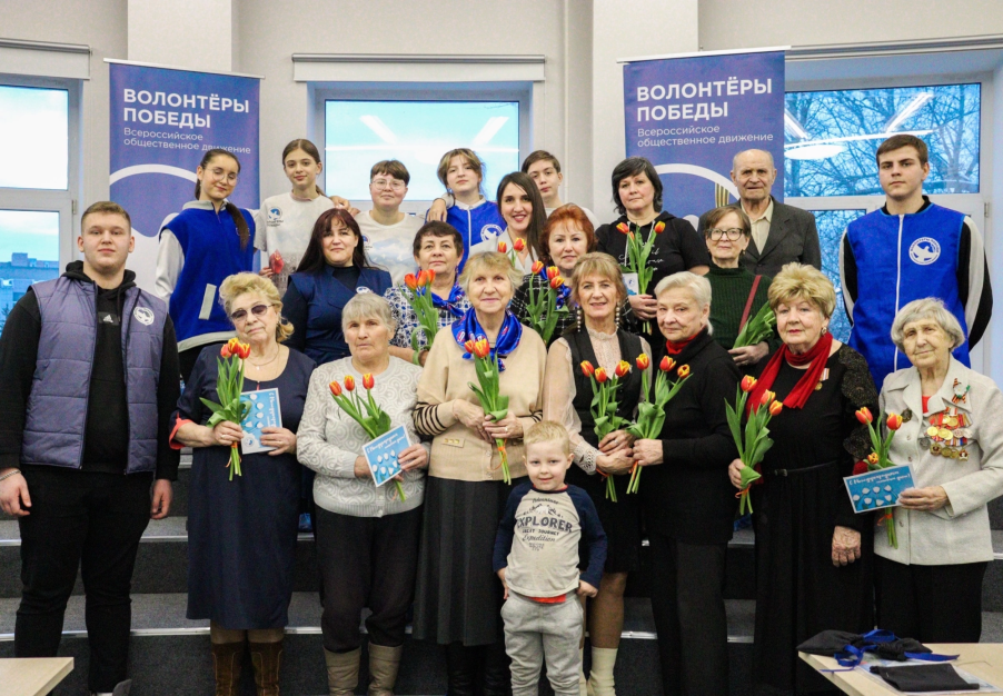 В преддверии Международного женского дня волонтёры Победы регионального штаба поздравили женщин-ветеранов прекрасными тюльпанами и открытками с пожеланиями