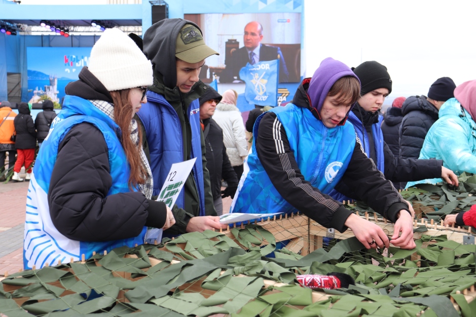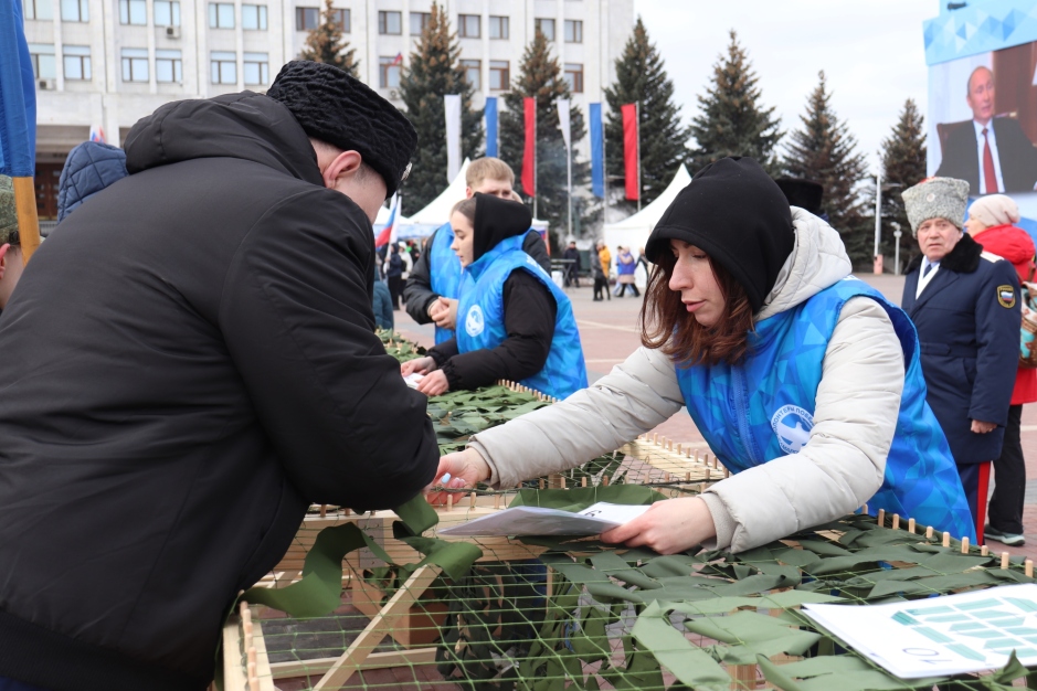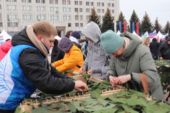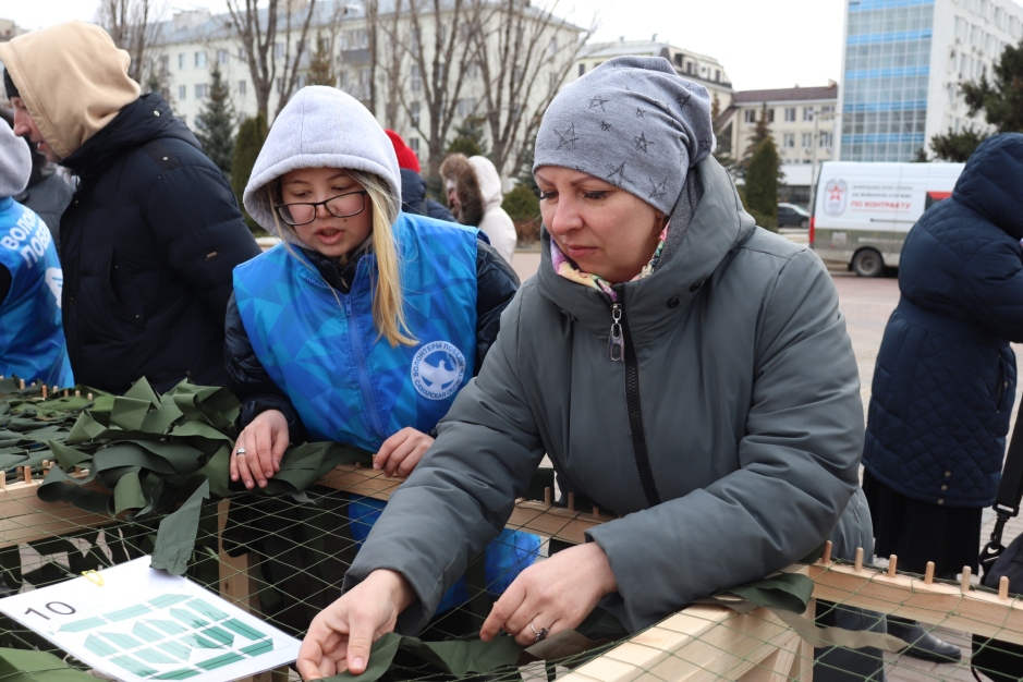 «Мы сплотились со всей страной вместе для того, чтобы помогать тем, кто защищает нашу Родину, и это важно! Потому что многие люди хотят помочь, и сегодня здесь предоставлена такая возможность: внести свой вклад и сплести маскировочные сети, которые впоследствии будут отправлены в зону СВО. И желающих очень много», – отметила Светлана Ромаданова, заместитель руководителя движения «Волонтеры Победы».