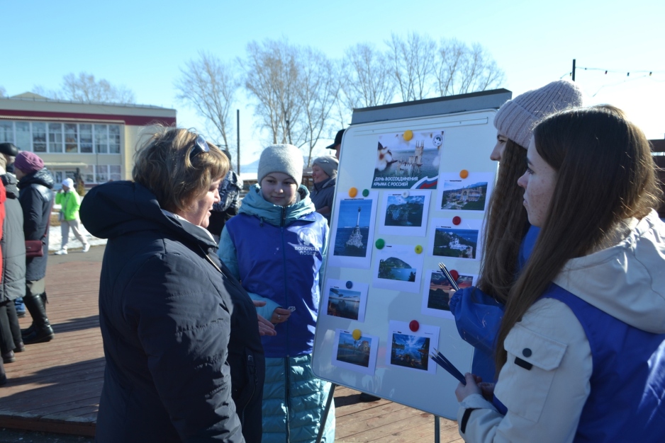 18 марта в рамках празднования Дня воссоединения Крыма Волонтеры Победы Новоселовского района провели акцию «Крым Наш».