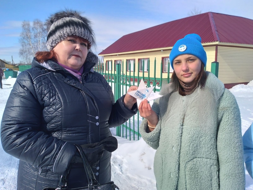 К акции присоединились Волонтеры Победы Тальменского района. Активисты школьных отрядов проводили мастер-классы и учили учеников складывать листовки в форме звезды. А после все вместе они раздавали звезды Героев и рассказывали жителям района о выдающихся земляках.