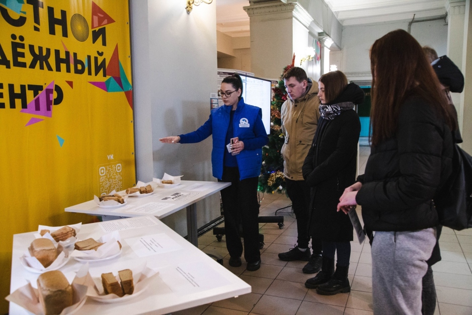 А Волонтёры Победы сегодня не только рассказывали, но и показывали главный символ блокадного Ленинграда — кусочек хлеба. Именно здесь посетители немного окунулись в то время, которое когда-то пережили обычные люди. А помогли этому: