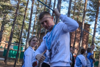 Первый день Слета был посвящен погружению в программу, постановке целей и презентации Движения и плана деятельности. Ребята прошли курс на сплочение и командообразование: веревочный курс и настольные спортивные игры, а также погружение в движение «Волонтеры Победы».