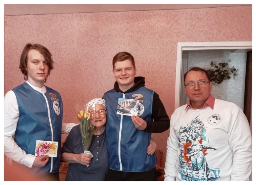 Волонтёры сердечно поздравили Валентину Тимофеевну с наступающим праздником и днем рождения, вручили «Письма Победы», написанные студентами, и пожелали крепкого здоровья и долгих лет жизни.