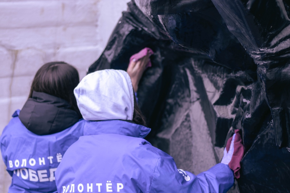Волонтёры убрали территорию памятника от мусора и грязи, после зимнего периода очистили от пыли сам мемориал и возложили цветы.