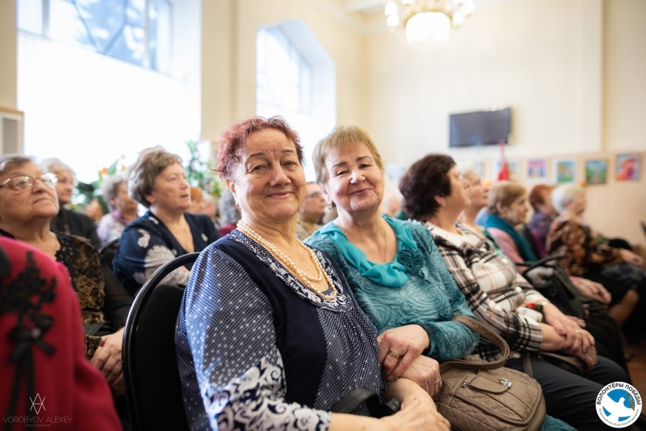 Волонтеры подготовили творческие номера, песни, стихи, танцы и представили их в зале «Дома профсоюзов», после концерта для ветеранов было организовано чаепитие.