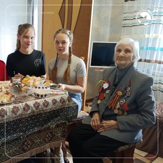 Во время беседы за чаем Анна Федоровна рассказала волонтёрам многое о своей жизни: где и в какой должности служила во время войны, как сложилась жизнь после её окончания. Каждый проникся и увлеченно слушал рассказы ветерана.