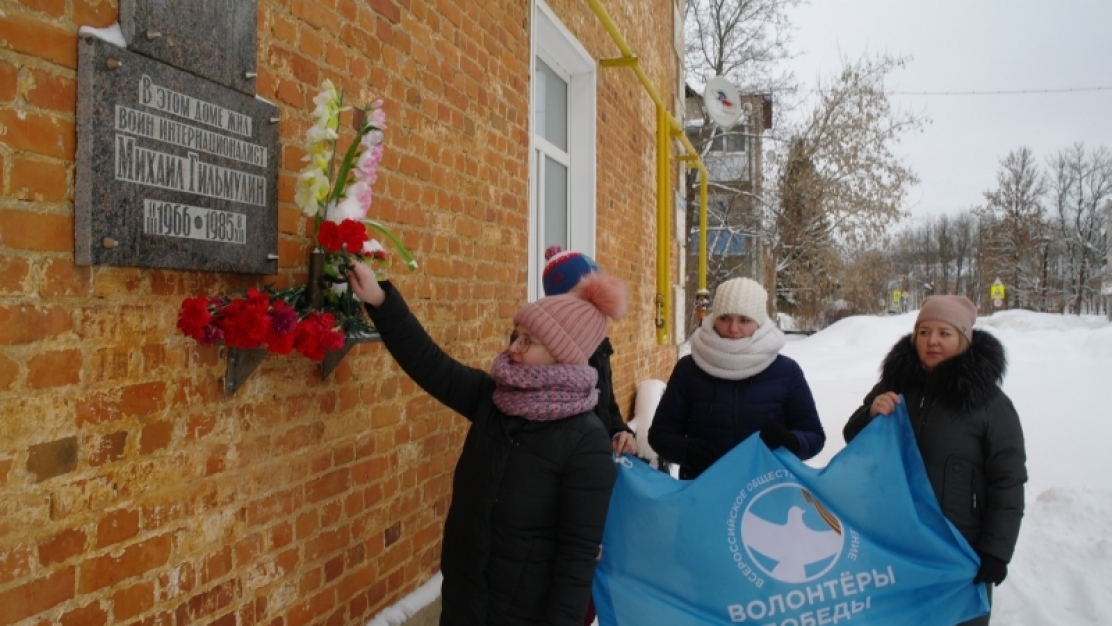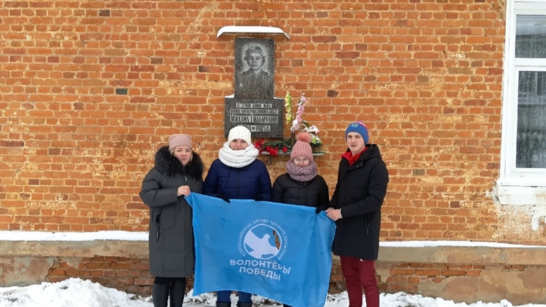 «Волонтеры Победы» возложили цветы к памятной доске у дома в селе Новое Леушино, где проживал Михаил Гильмулин.