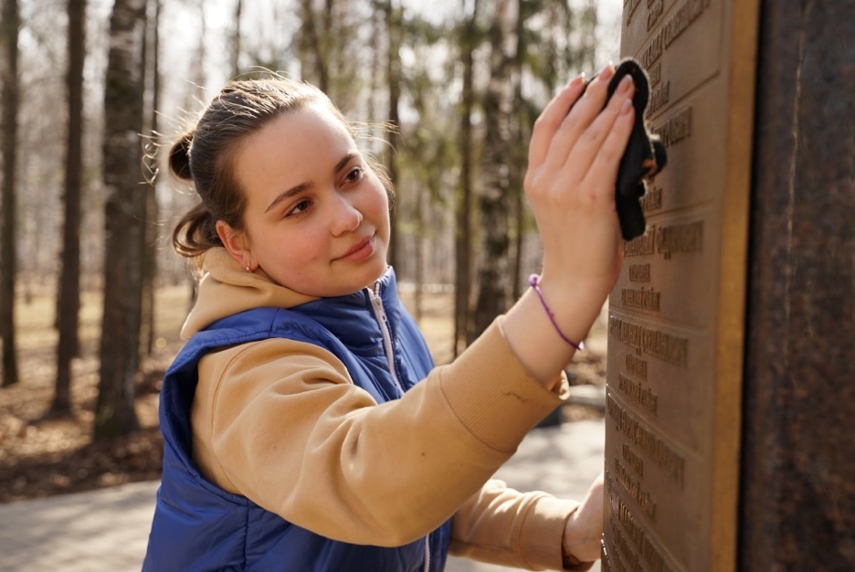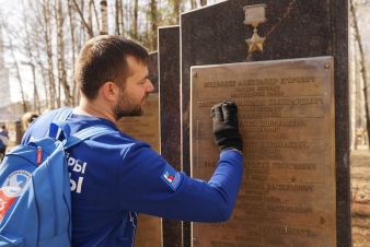 Добровольцы прибрали территорию парка: убрали мусор, старую листву и вымыли мемориальные доски с именами погибших воинов.