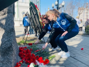 Волонтёры Победы почтили память погибших от преступлений нацистов. В городах и населенных пунктов добровольцы организовали митинги с возложением цветов у мемориалов и памятных мест.
