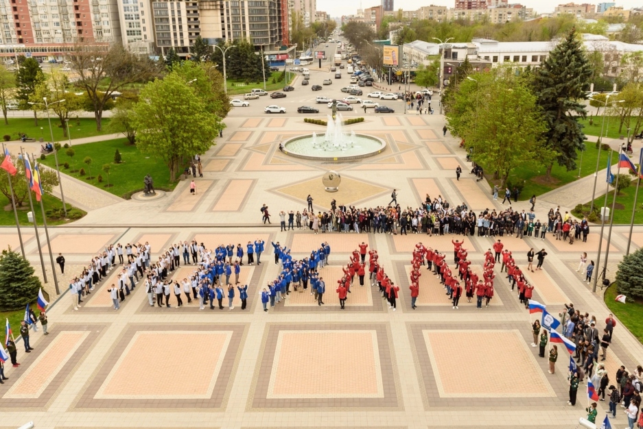 На площади перед главным корпусом прошло торжественное поднятие флагов РФ, Ростовской области и ДГТУ. Для поднятия флагов были приглашены студенты, имеющие заслуги в разных областях деятельности. Далее собравшиеся на площади приняли участие во флешмобе, целью которого было построение слова «Поехали». Эту фразу 12 апреля 1961 года произнес Юрий Алексеевич Гагарин во время старта первого пилотируемого космического корабля «Восток».