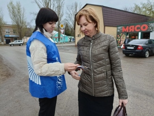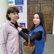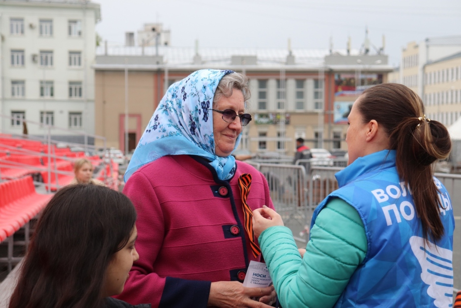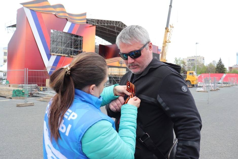 Волонтеры вручали жителям Георгиевские ленты и рассказывали о том, как правильно носить символ памяти. Лучшее место для ношения Георгиевской ленты – слева на груди, у самого сердца. Повязывать лентой волосы, надевать вместо ремня или вовсе носить на обуви считается недопустимым.