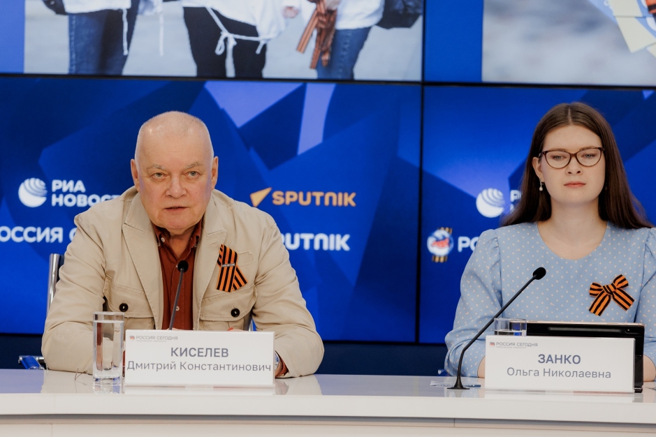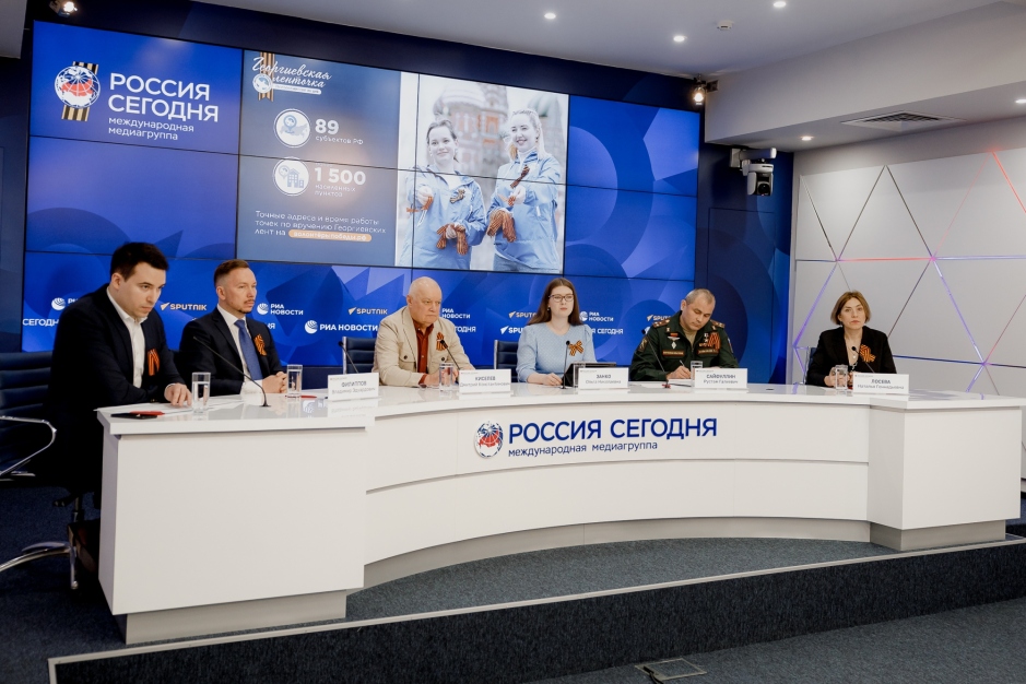 Сегодня Зампред комитета ГосДумы по развитию гражданского общества, Председатель Центрального штаба ВОД «Волонтёры Победы» Ольга Занко и генеральный директор МИА «Россия сегодня» Дмитрий Киселев дали старт традиционной акции «Георгиевская ленточка». С 2015 года «Волонтёры Победы» помогают в проведении акции.