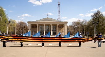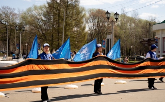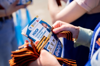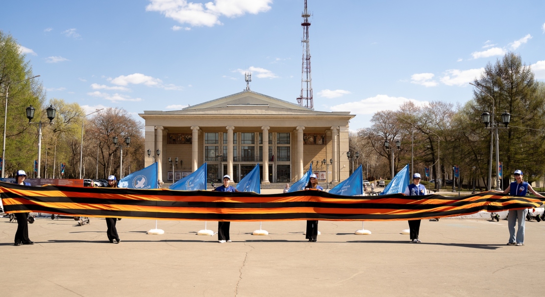 Волонтеры растянули символ воинской славы на площади Революции и порядка 1500 тысяч ленточек с информационными листовками получили жители города Кирова.