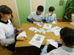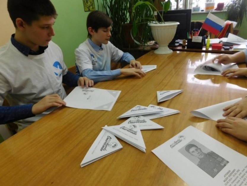 На подготовленных шаблонах для писем-треугольников волонтеры впечатали портреты и сведения о героях-земляках Порецкого района (8 героев) и сложив их по схеме, раздали на заранее определенных местах, информируя жителей села о подвиге Героя и о Движении в целом в устной форме.