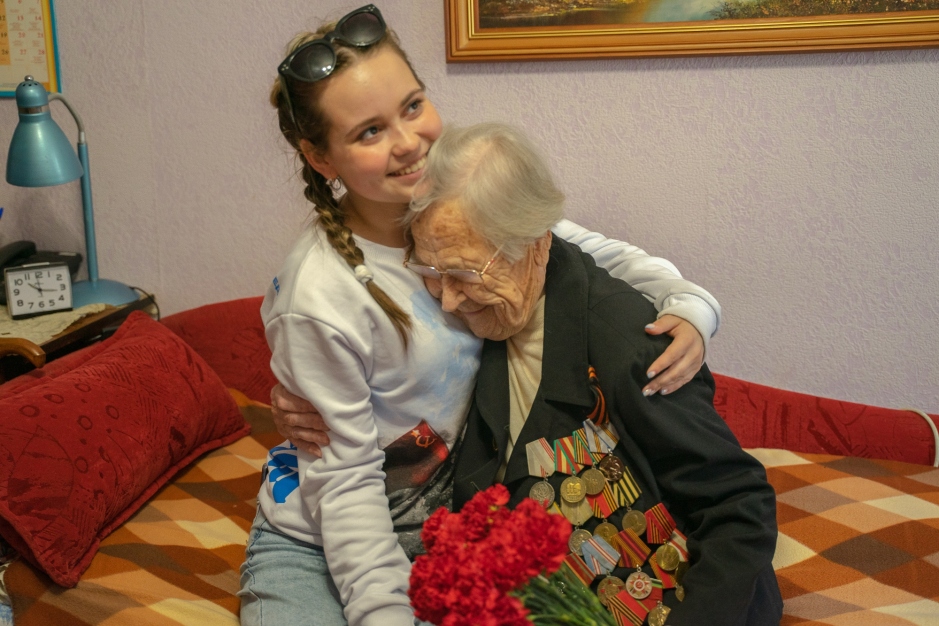 Также добровольцы поздравили с наступающим Днём Победы и передали подарки ветеранам Великой Отечественной войны Щениной Антонине Андреевне, Корепановой Анне Кузьмовне и исполнили мечту Климович Людмилы Павловны – пригласили её на Парад Победы 9 мая в Москве.