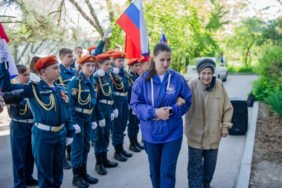 Так, Волонтёры Победы в Севастополе вместе с кадетами академии МЧС поздравили ребёнка войны, ветерана Великой Отечественной войны Чукарину Нику Афанасьевну. Для Героя устроили концерт под окнами, на котором добровольцы спели «День Победы» и легендарную «Катюшу» вместе с Никой Афанасьевной. Волонтёры Победы передали Герою подарки и поздравили с наступающим праздником Великой Победы. А затем, после концерта, добровольцы вместе с активистами из академии МЧС обустроили палисадник ветерана. Теперь под окнами Героя цветёт прекрасный сад, который будет напоминать ветерану о сегодняшней встрече.