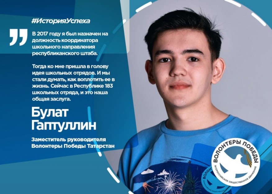 История успеха Булата началась с волонтёрского корпуса 70-летия Победы, где он был координатором Азнакаевского районного отделения.