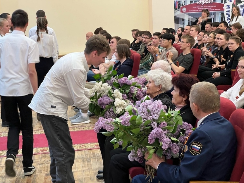 В завершении концерта Волонтёры Победы прошли единым строем Бессмертного полка с портретами Героев, отдавших свою жизнь, молодость, силы за Великую Победу. После чего при исполнении музыкальным коллективом ВИТИ НИЯУ МИФИ легендарной песни «День Победы» Волонтёры Победы подарили ветеранам букеты цветов.