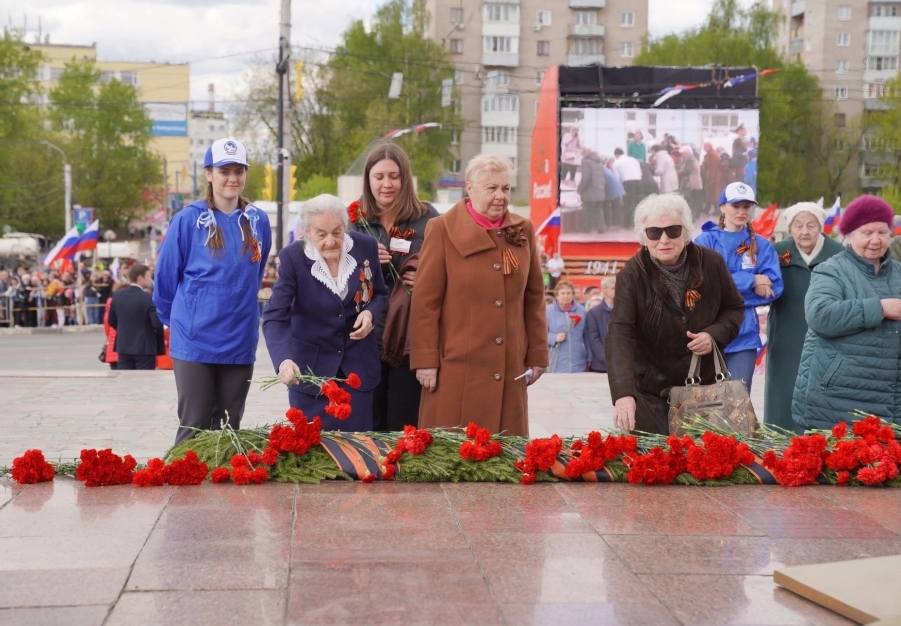 По окончании Парада Победы жители и гости города возложили цветы к Вечному огню.