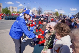 Волонтеры Победы на протяжении всего мероприятия сопровождали ветеранов, участников войны и гостей парада.
