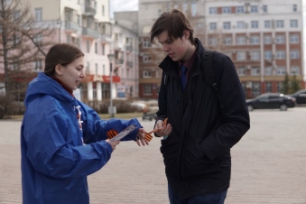 А в преддверии Дня Победы активисты школьного отряда имназии №123 города Барнаула вышли на улицы Индустриального района, чтобы рассказать о символе Победы. Ребята вручали горожанам Георгиевские ленточки, а также памятки с историей атрибута и способами крепления к одежде.