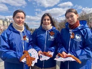 В Барнауле Волонтёры Победы Алтайского регионального отделения совместно с Российским движением детей и молодёжи «Движение первых» дали старт ежегодной акции «Георгиевская ленточка» в регионе. Активисты раздали жителям и гостям краевой столицы ленточки, а также памятку с историей ленты и правилами её ношения. Также Волонтёры Победы показали различные способы того, как правильно завязать георгиевскую ленточку.