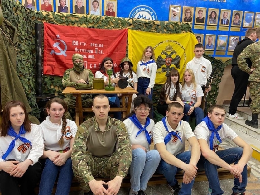 Волонтёры Победы общественного центра Алейского технологического техникума стали гостями мероприятия. Ребята приняли участие в интерактивных и тематических фотозонах, расположенных в фойе концертного зала. Они примерили плащ-палатку, заглянули в землянку и познакомились с современным военным обмундированием. Также волонтёры смогли попробовать свои силы в разборке и сборке легендарного автомата «АК-74» и посмотрели на выставку муляжей военного оружия.