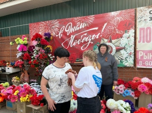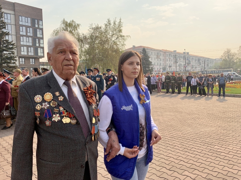 «Сегодня мы с Волонтëрами Победы осуществляем волонтёрское сопровождение парада Победы в самый главный день — 9 Мая. Активно работаем на трибунах, также раздаём Георгиевские ленточки, поздравляем всех с праздником и дарим свои улыбки», — поделилась Любовь Корнеева, координатор направления «Связь Поколений».