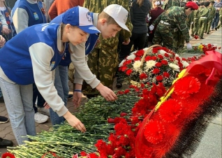 Сегодня на Мемориале Славы города Барнаула состоялась торжественная церемония возложения цветов, посвящённая 78-летию со Дня Победы в Великой Отечественной войне. Волонтёры Победы регионального отделения вместе с ветеранами возложили цветы, а также вручили барнаульцам Георгиевские ленточки. На площади Советов прошёл парад Победы, главными зрителями которого стали ветераны Великой Отечественной войны. Активисты отделения сопровождали Героев на трибунах и наблюдали за торжественным шествием войск Барнаульского гарнизона.
