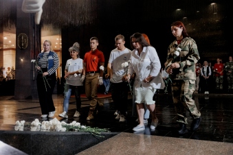 В Москве желающие почтить память погибших детей пришли в Музей Победы на экспозицию «Обыкновенный нацизм», где представлены документы, дневники, личные вещи членов националистических батальонов Украины, а также статистические данные о жертвах бандформирований и подлинные экспонаты из Рубежного, Мариуполя, Попасной и Северодонецка, где ВСУ наносили удары по мирным жителям. Рядом с инсталляцией детских качелей и игрушек участники мероприятия зачитали имена 291 ребенка-жертв, павших от рук нацистов в ходе боевых действий на территории Донбасса. При зачитывании имен в помещении были зажжены символические памятные свечи. Также участники мероприятия возложили цветы в зале памяти и скорби Музея Победы.