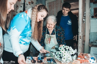 Ребята навестили Маргариту Александровну и поздравили её с 92 летием. Волонтеры помогли почистить дорожку у дома и принесли воды.