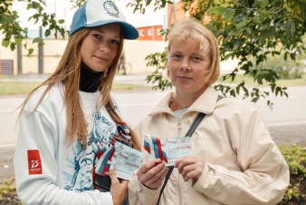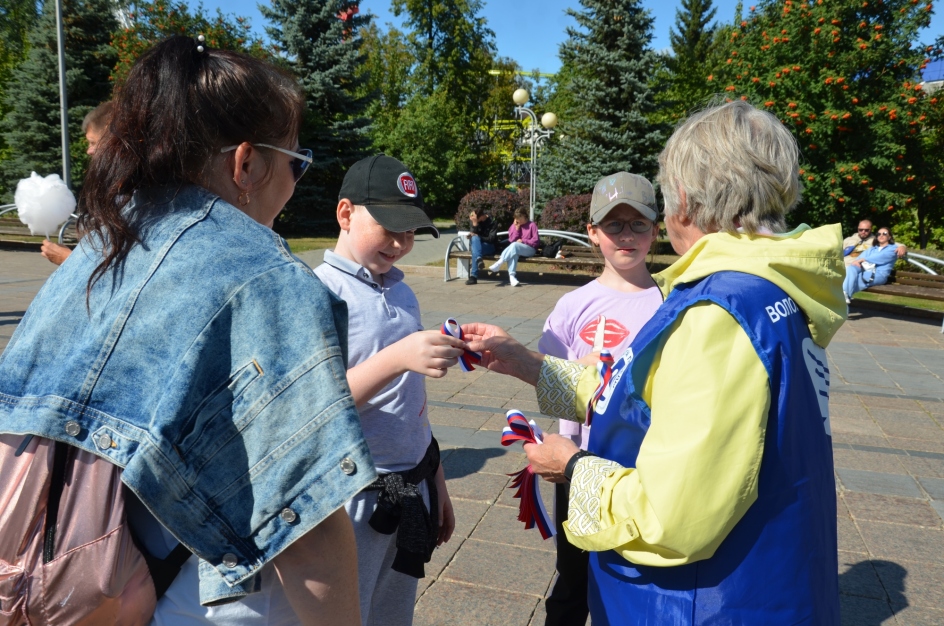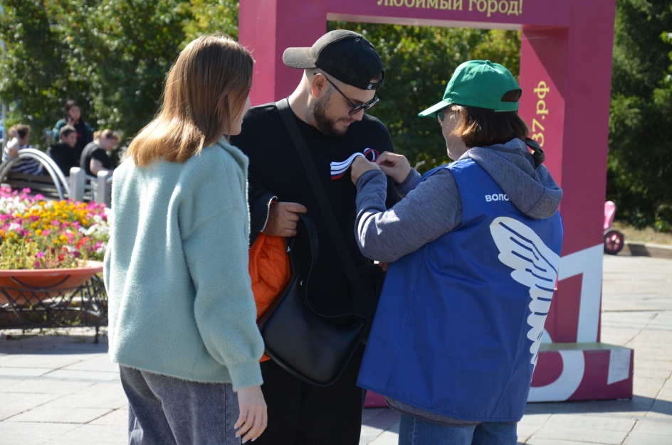 Сегодня активисты движения «Волонтёры Победы» вручили жителям Тюмени ленточки с российским триколором и поздравили с праздником.
