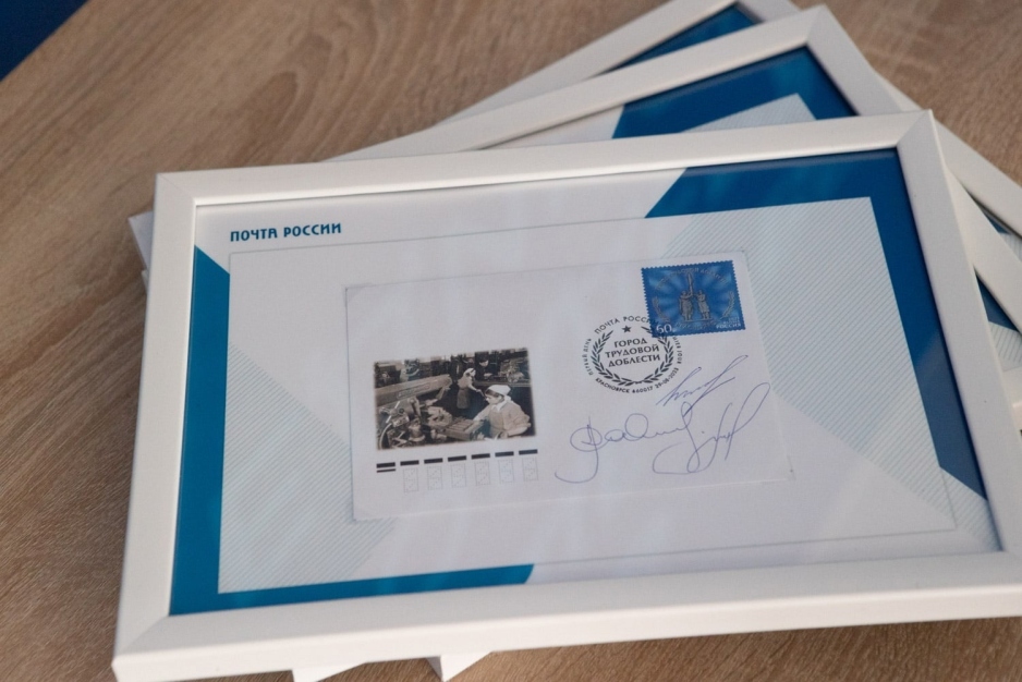 «С 2020 года по инициативе президента это звание присваивается большим и малым городам, которые внесли исключительный вклад в Победу. Красноярцы участвовали в конкурсе, в городе были собраны десятки тысяч подписей в поддержку, и в 2021 году решение было принято. В честь события мы открыли мемориал в районе одного из легендарных предприятий — «Красноярского машиностроительного завода». Сегодня произошло вот это событие — выход и гашение марки, которое увековечивает статус Красноярска.