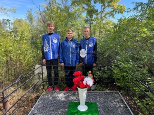 Кроме этого, в День знаний самые маленькие Волонтёры Победы, воспитанники детского сада №5, вместе с старшими коллегами из Алейского Лицея навестили захоронение Вали Олешко. Ребята благоустроили её могилу, поставили вазон с цветами. После добровольцы минутой молчания почтили память подвигу советской разведчицы.