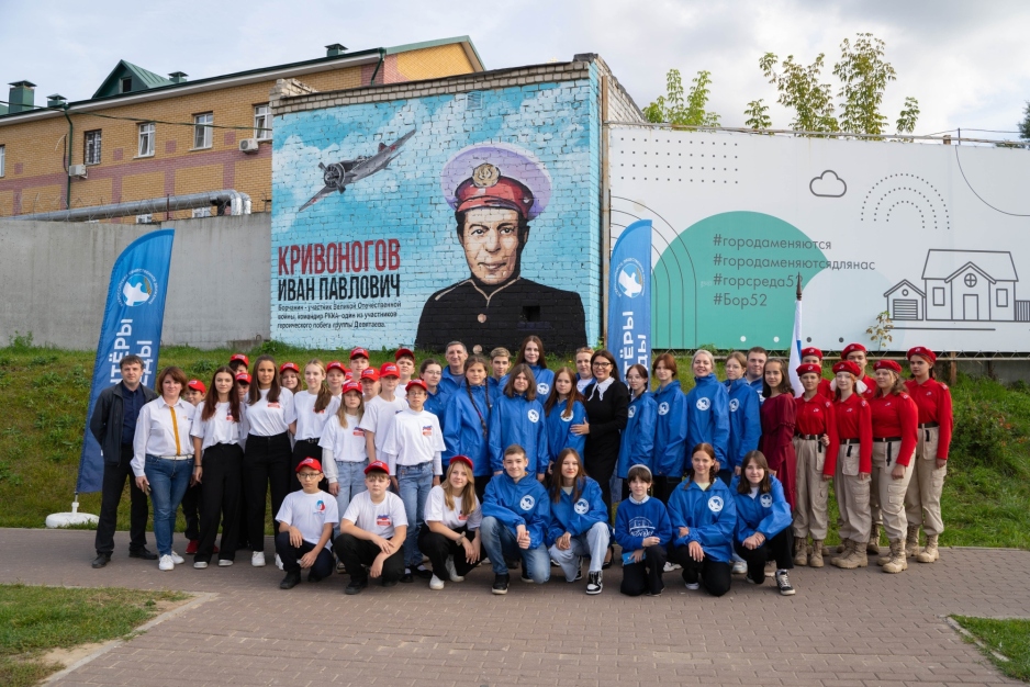 Масштабный арт-объект появился на здании трансформаторной подстанции в г.о.г. Бор на улице Интернациональной. На нем изображен участник Великой Отечественной войны, офицер Красной Армии, писатель-мемуарист Иван Кривоногов. Мурал создан в рамках социального проекта «Образ Победы», реализуемого на территории Нижегородской области региональным отделением Всероссийского общественного движения «Волонтеры Победы» при поддержке Фонда президентских грантов.