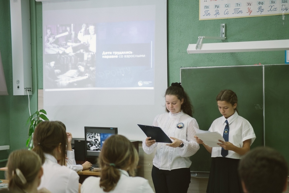 Сегодня Волонтёры Победы школы №13 провели урок памяти для учеников 8 класса, где рассказали об исторических фактах, людях и даже успели провести небольшую викторину, чтобы проверить усвоенный материал.