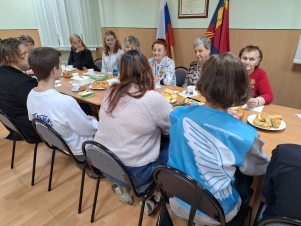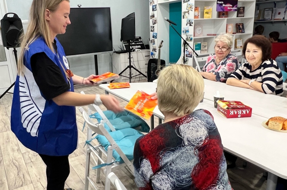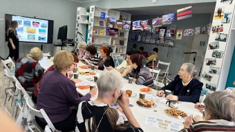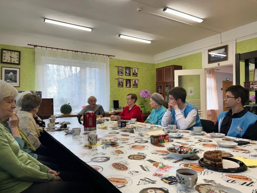 А участники Движения Кольского района встретили гостей почетного возраста в молодежном пространстве «Сопки». Волонтёры подарили открытки всем причастным и провели краеведческий квиз. После все вместе слушали песни собственного сочинения от Фёдоровой Зинаиды Михайловны о Коле и Мурманске. Посетили новый славянский центр и ознакомились с действующими выставками. В завершение пили чай с вкусняшками и просто разговаривали. На вопрос «Как вам удается быть такими активными и полными сил и оптимизма?», гости ответили: «Пойдете на пенсию - сами все узнаете!». Не хотят раскрывать секреты