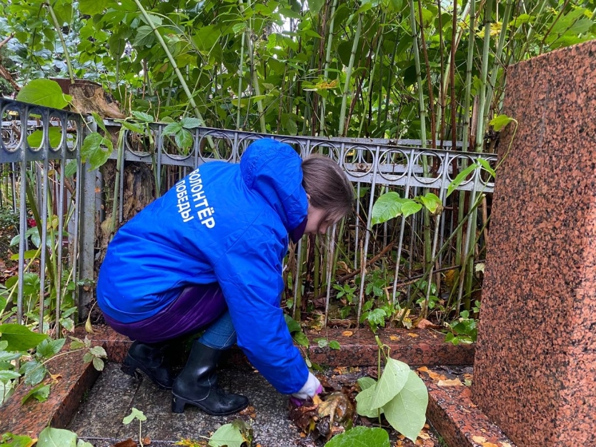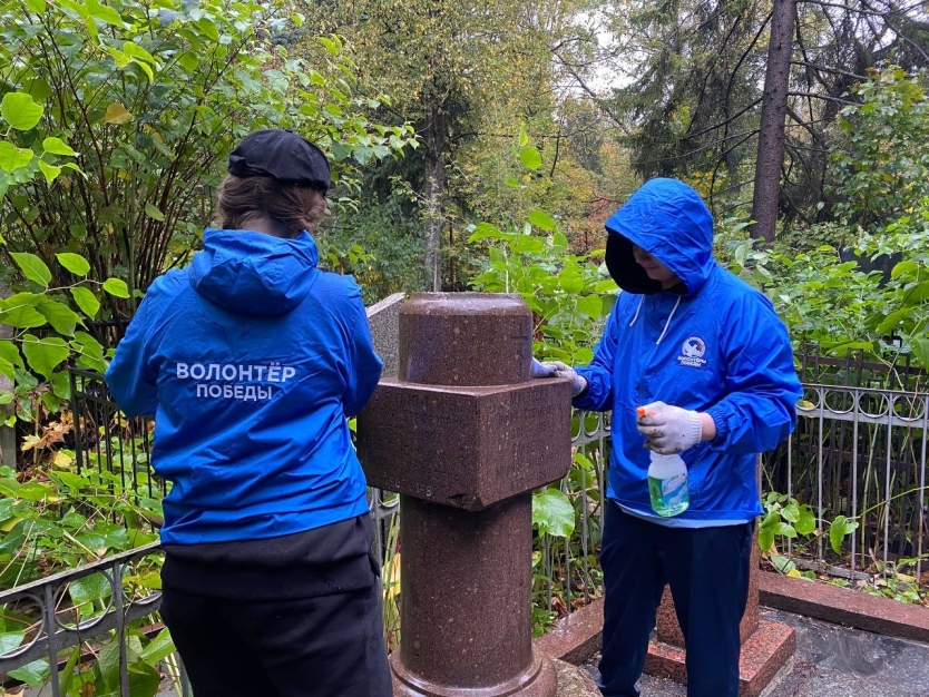 В Москве Волонтёры Победы, не смотря на дождевые осадки, вышли на субботник на Головинское кладбище. Активисты привели в порядок захоронение семьи советского историка Нины Михайловны Молевой.