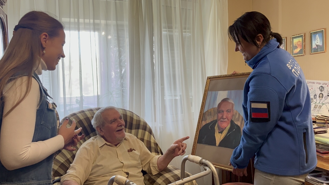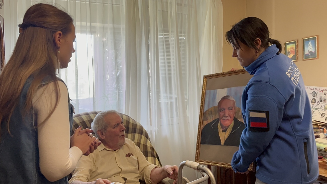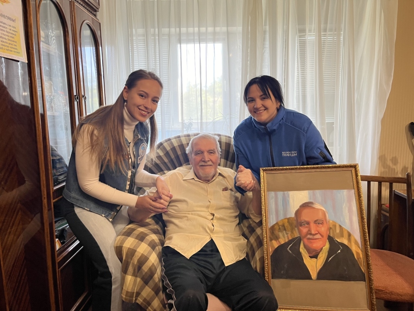 В Донецкой Народной Республике добровольцы пришли в гости к ветерану Великой Отечественной войны Владимиру Константиновичу Шелудько. Ветеран родился в 1925 году, а воевать начал в 17 лет. За годы войны он был три раза ранен, а после её окончания продолжил службу на Кавказе. Ребята вручили герою портрет, нарисованный волонтёрами из разных регионов России. «Ветеран очень обрадовался и сказал, что у него столько эмоций, что ему сложно собрать все мысли воедино и что-то сказать. Но мы сделали большое дело, и через много лет его внуки будут смотреть на этот портрет и вспоминать своего Героя», – поделилась Карина Косенко, волонтёр регионального штаба Движения.