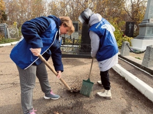 Сегодня Добровольцы очистили от листьев и мусора братские захоронения героев Великой Отечественной Войны на Арском кладбище г.Казани.