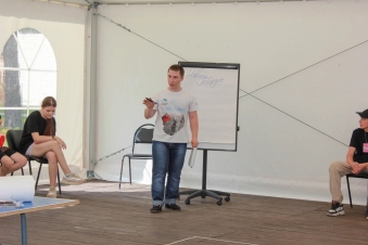 Дмитрий Глуханич, координатор направления «Наши Победы», подробно рассказал про квесты и РИСКи, а также поделился технологией создания квеста. Позже все ребята попробовали создать свою игру по станциям.