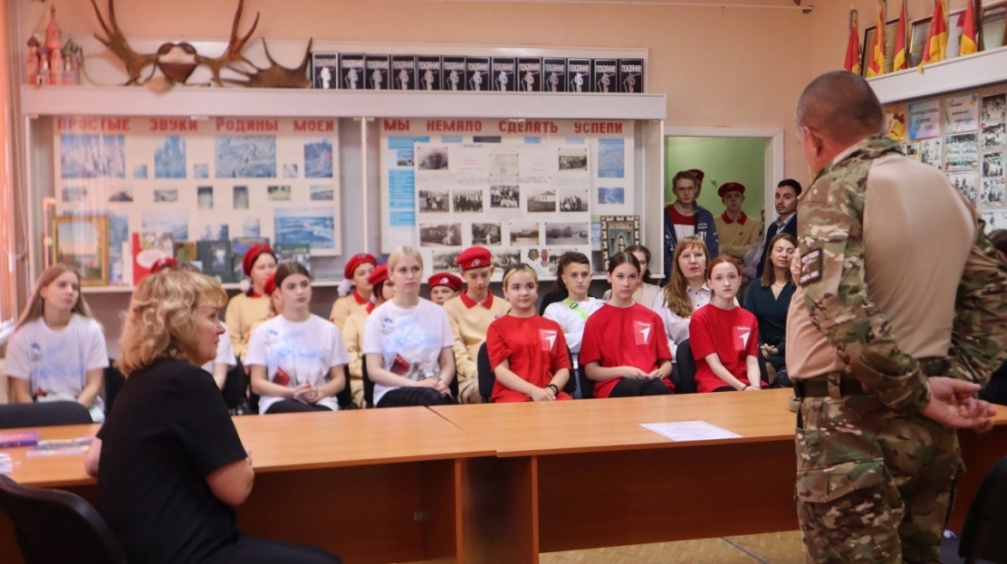В День знаний в музеи «Возрождение» средней школы № 2 им. Г.В. Кравченко состоялась встреча патриотических объединений округа с Гульнарой Ренатовной Идрисовой, руководителем администрации г. Вуктыла, Юрием Е., участником специальной военной операции.