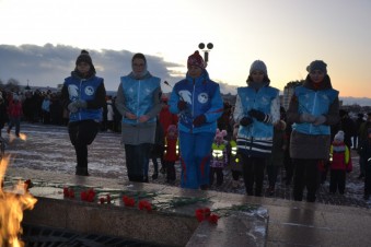 Сегодня волонтёры Победы вместе с неравнодушными жителями города Чебоксары приняли участие в возложении цветов к вечному огню в парке Победы.