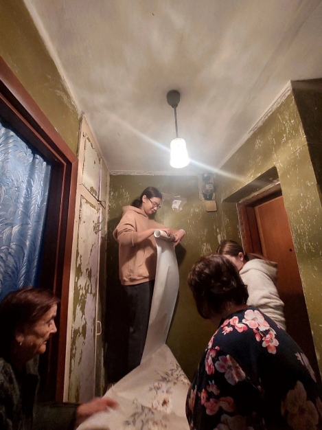 Волонтёры Победы города Гуково на протяжении нескольких выходных дней помогали ветерану Великой Отечественной войны Раисе Григорьевне Шевелёвой. Ребята помогли сделать косметический ремонт и помогли поклеить обоями стены кухни и прихожей.