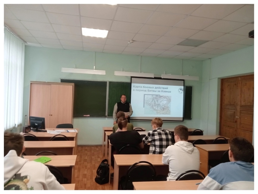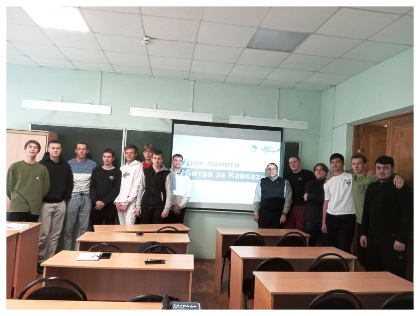 В ходе урока памяти «Битва за Кавказ» школьники узнали о событиях Великой Отечественной войны, которые происходили с 25 июля 1942 года по 9 октября 1943 года на территории Кубани и Северного Кавказа. На уроке шла речь о героизме красноармейцев, ключевых моментах сражения и ужасах оккупации.