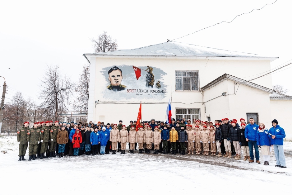 На торжественном открытии мурала более 100 участников – представителей патриотических юношеских объедений – и почетные гости почтили память погибших в годы Великой Отечественной войны минутой молчания.