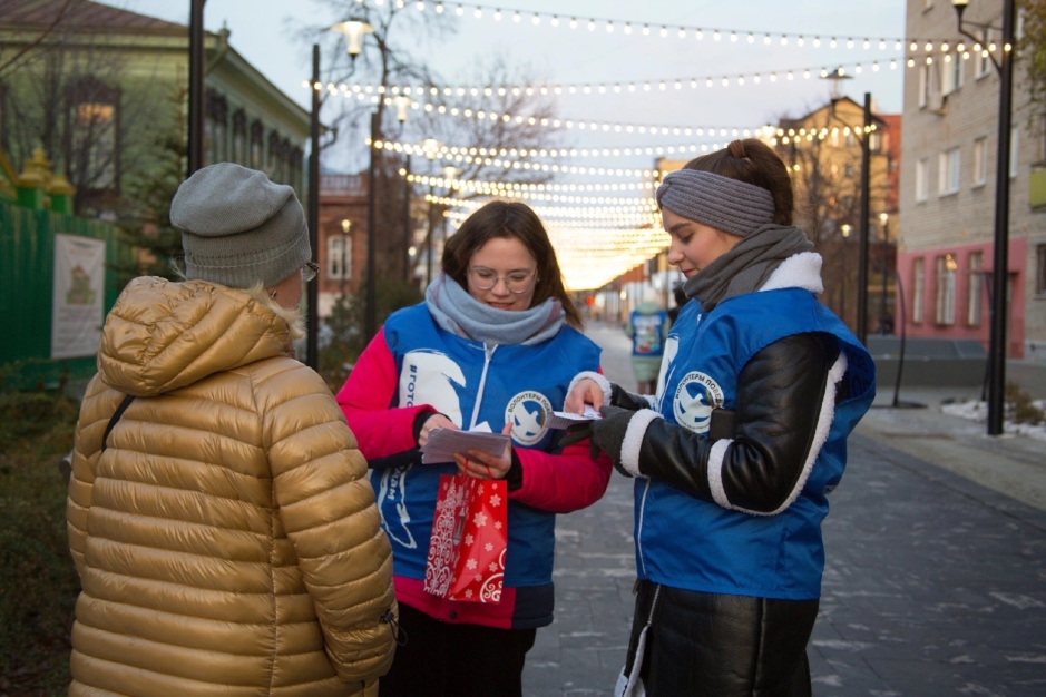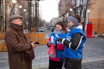 «Волонтёры Победы» Колледжа цифровых и педагогических технологий провели для жителей Тюмени викторину «Это Россия».