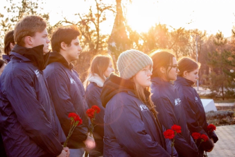 Активисты волонтёрского корпуса проекта «Внуки Победы. Прохоровка» в рамках проекта «История сквозь время» почтили память погибших и возложили цветы к памятнику расстрелянным жителям и партизанам.